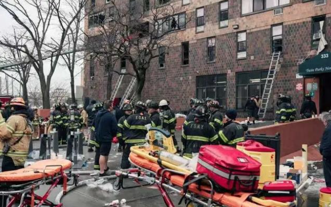 據紐約市消防部門稱,9日上午11時左右,消防員接到報警電話稱,一座位于紐約布朗克斯區東181街333號的19層公寓發生火災,火災始于一套復式公寓的二樓和三樓。