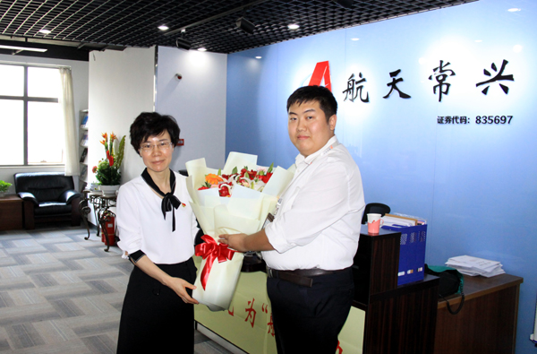 在2019年5月30日“全國科技工作者日”之際,北京航天常興科技發展股份有限公司科技一線工作者趙海龍先生與總經理王德坤女士等迎來了大興區科學技術協會趙連英主席、大興區科協副主席李建國等一行人員對科技工作者的節日慰問及工作指導。