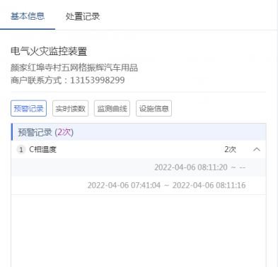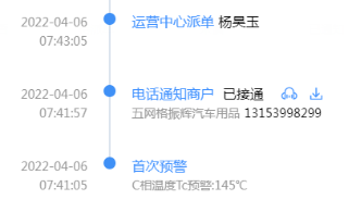 接收到此預警后,中心值守人員立即撥打此商戶電話,通知該商戶業主,告知商戶線纜溫度異常過高,具有重大安全隱患,請其立刻停止大功率用電器并斷電,并讓該業主立刻通知電工前往處置,隨即派單中心巡檢人員,讓其立刻前往現場復核處置該預警。