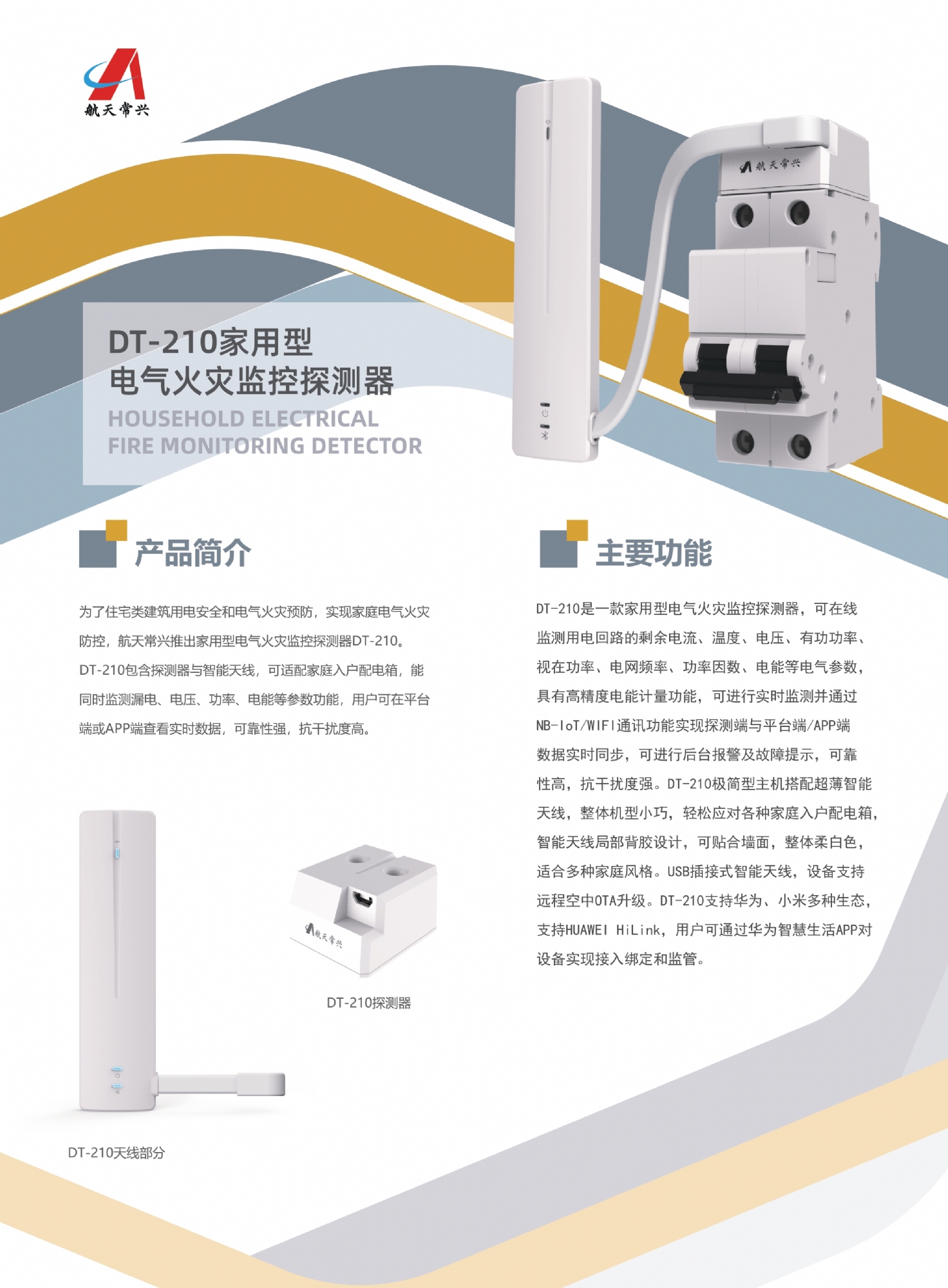 DT-210作為家用型電氣火災監控探測器,采用I0r 阻性漏電檢測技術,可在線監測AC220V的漏電、溫度、電壓、有功功率、視在功率、電網頻率、功率因數等電氣參數,具有高精度電能計量功能,實時監測并通過NB-IoT無線通訊功能實現數據與平臺端或APP端實時同步數據,進行后臺報警及故障提示,可靠性高,抗干擾度強。