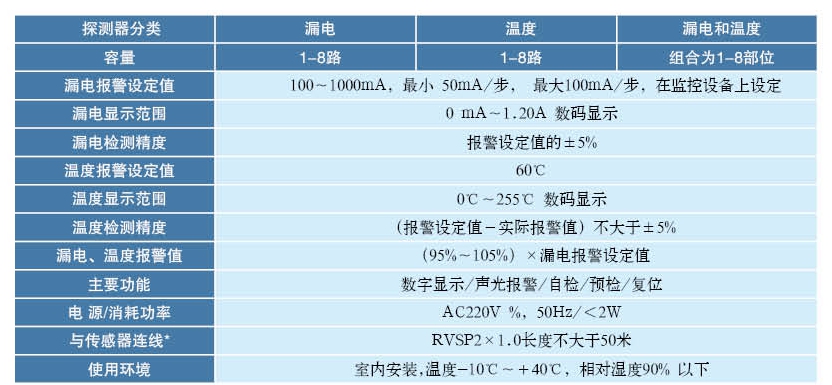● 功能完備 數(shù)字顯示漏電電流值、聲光報警、手動自檢、預(yù)檢、設(shè)備故障自動檢測、數(shù)據(jù)存儲和查詢、報警信號輸出、控制信號輸出、打印信息、與上位 計算機聯(lián)網(wǎng)。