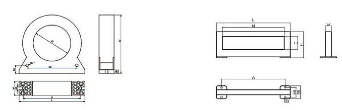 對插式剩余電流互感器外形及固定支架尺寸圖