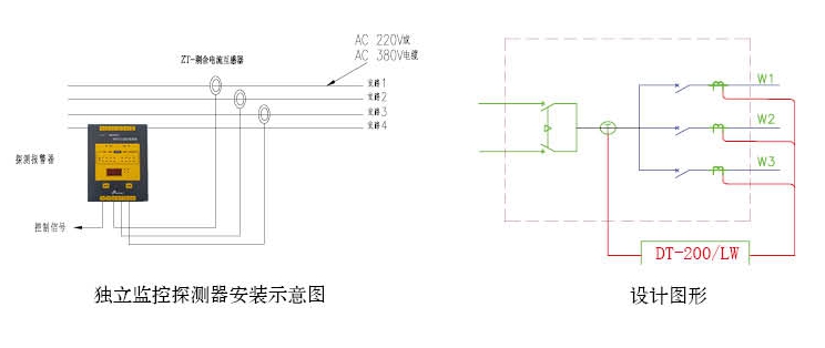 電氣火災(zāi)監(jiān)控探測器安裝示意