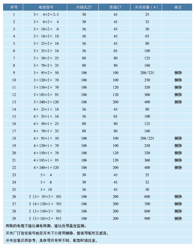第十節(jié) 電纜型號、空開容量與互感器選型表