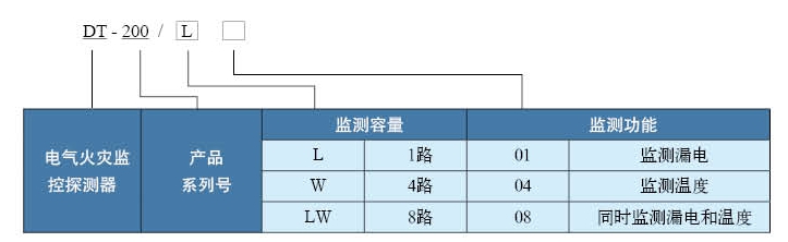 2.1 電氣火災(zāi)監(jiān)控探測器型號表示方法